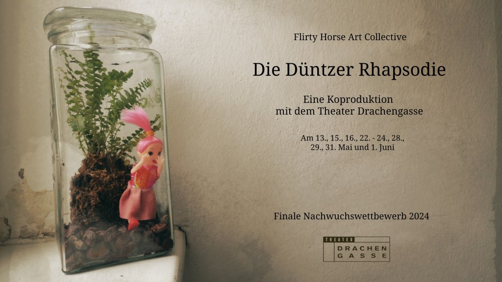 We are happy to announce that our project was selected for participation in the competition at the theater Drachengasse: Finale Nachwuchswettbewerb 2024 will take place on the 13th of May 2024 at Drachengasse 2, 1010 Wien.