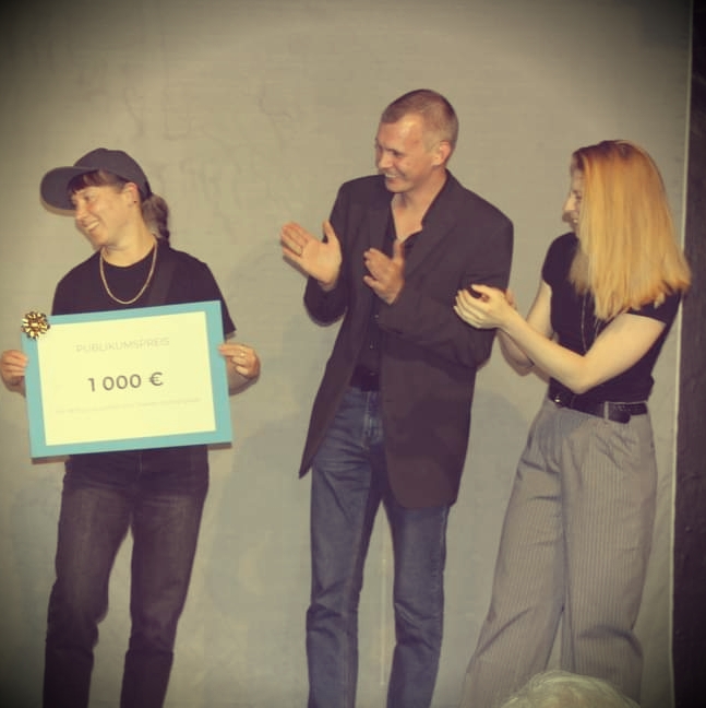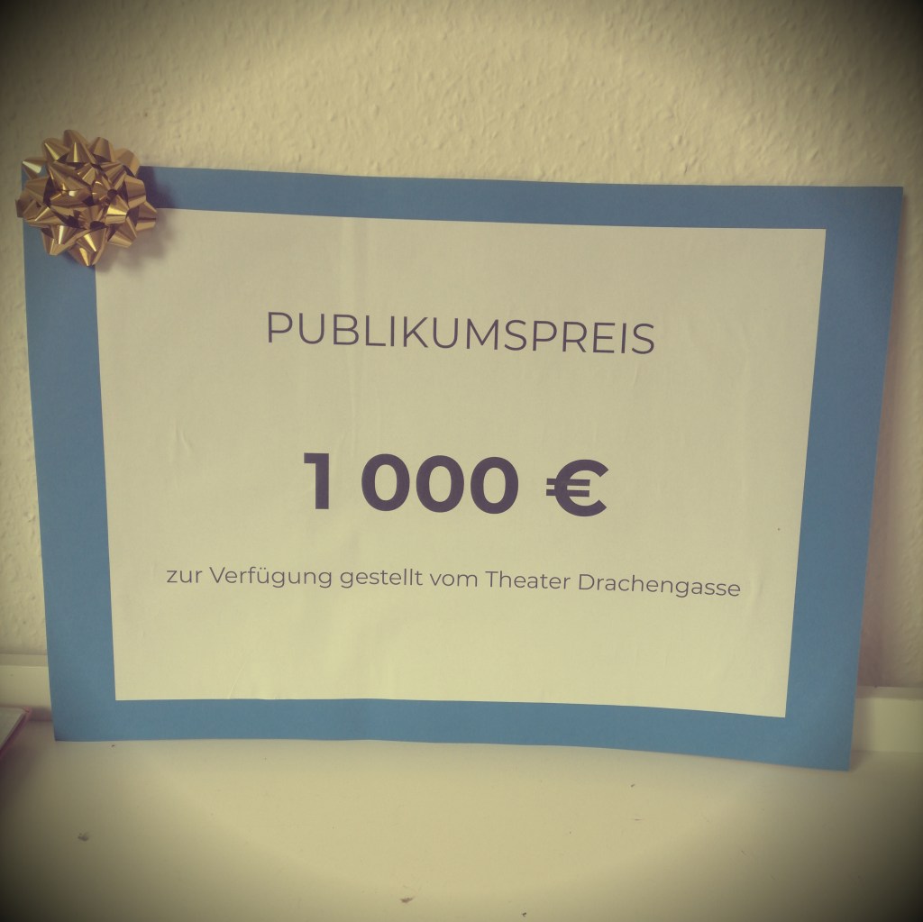After each of the 10 performances, the audience members were invited to vote for one of the pieces, and the biggest number of voices was given for our project! Thank you for choosing us, it means the world to our team! Many thanks to the theater Drachengasse, and personally to Katrin Schurich, Katrin Kukelka-Lebisch, Karin Koller, Julian Brendinger, Hannes Stockinger, Matthias Vanura, and the entire team of the theater! It was a very beautiful time and a great experience!