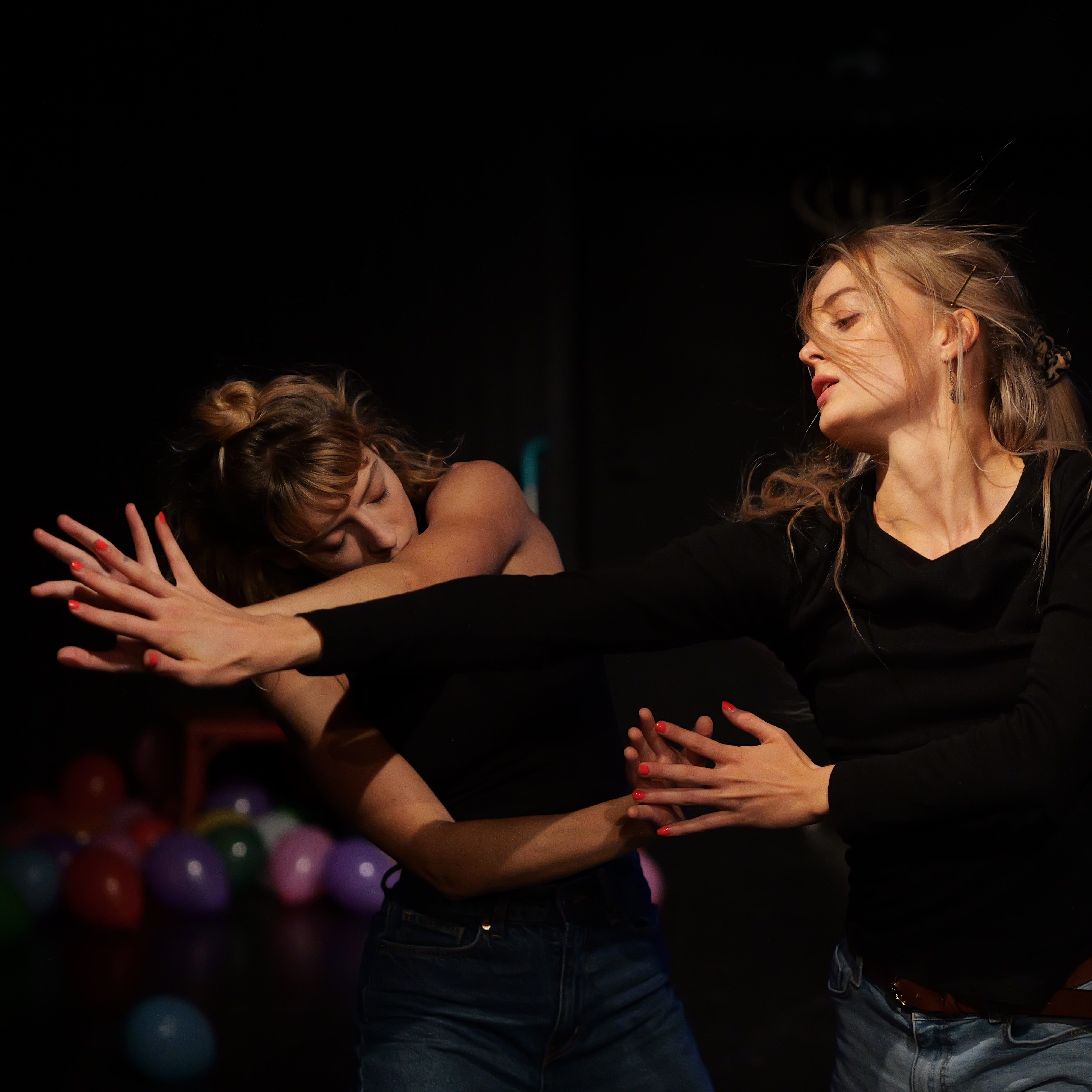 We went on quite an adventure with the amazing Josefine Reich and Stella Wiemann and created this piece in only two weeks. It was based on Ivan’s play which was significantly transformed during the rehearsal process; it involved beautiful music by Ilja Gussarov and was performed three times at the Pygmalion Theater. That was an exciting, stressful, and rewarding experience involving a crowdfunding campaign (endless gratitude to everyone who supported us – without you, this premiere would not have occurred!), five hundred (or more?) balloons, and sincerely heavy topics. Photographed by Lukasz Czapski.