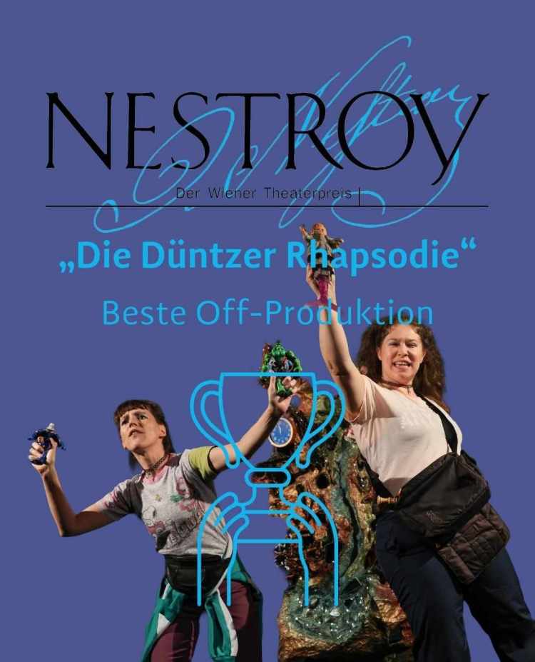 Wir sind unendlich glücklich und möchten uns herzlich bei der Nestroy-Jury bedanken – für die Wertschätzung unserer Arbeit und für das Vertrauen. Das bedeutet uns, einer kleinen Gruppe der freien Szene, unglaublich viel! Wir danken und gratulieren auch dem wunderbaren Theater Drachengasse, Katrin Schurich, Kathrin Kukelka-Lebisch und allen, die unsere Produktion begleitet und unterstützt haben – und natürlich ein großes, herzliches Dankeschön an unser Dream-Team: Bianca Braunesberger, Kasija Vrbanac Strelkin, Barbara Angermaier und Marika Rainer!