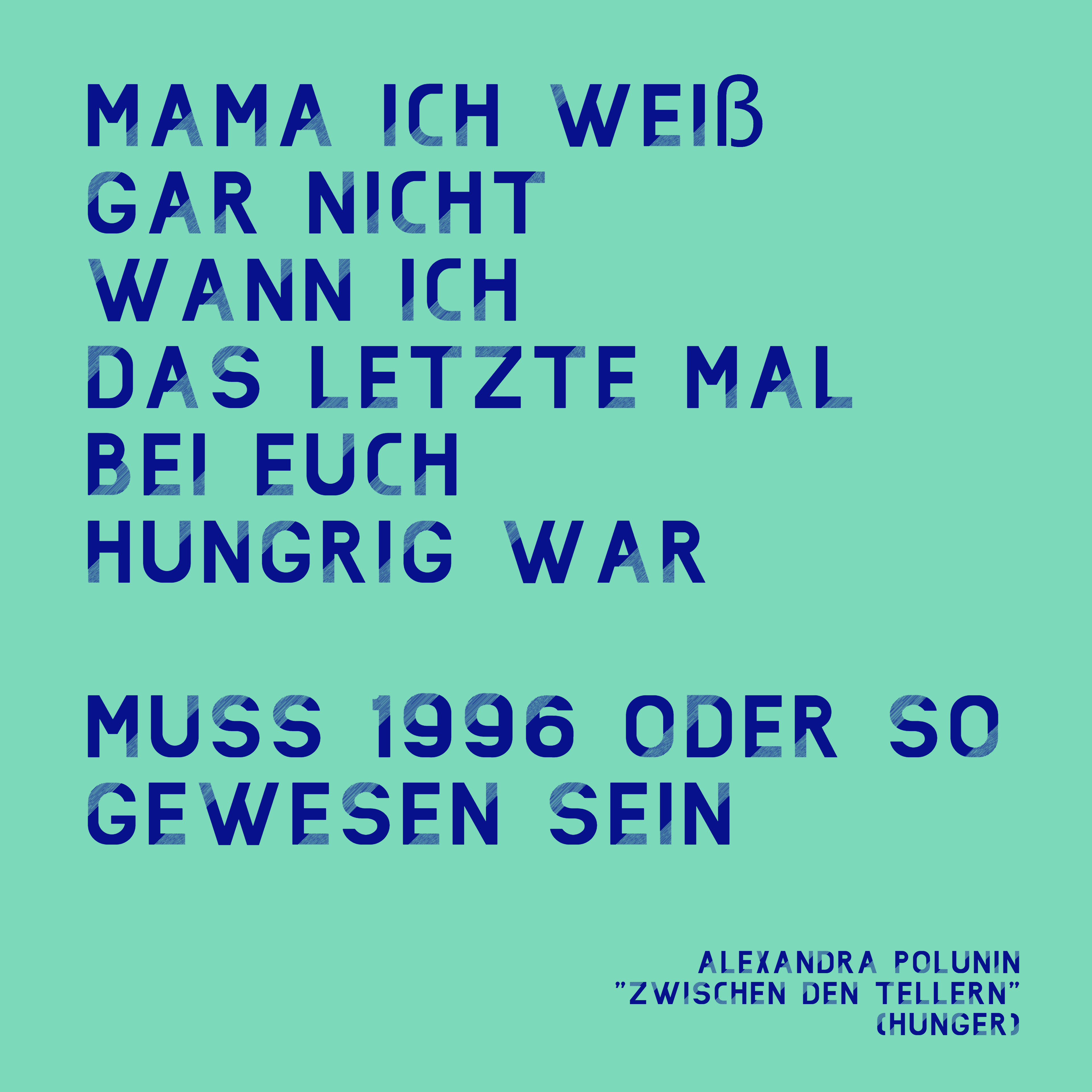 Alexandra Polunin mit dem Text “Zwischen den Tellern” (Hunger)